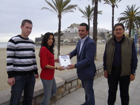 Lorena Carrillo, vecina de Aranjuez, ganadora del Ipad del concurso fotográfico que el Patronato Municipal de Turismo de Peñíscola organizó en Fitur, ha recibido de manos del Alcalde de la ciudad, Andrés Martínez, su premio.