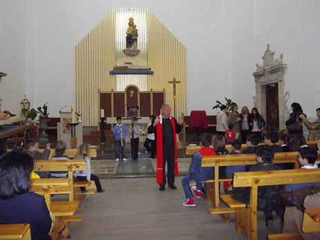 Los niños y niñas que siguen la catequesis previa a la Primera Comunión, participan de este Via Crucis Infantil que organiza la Parroquia Santa María, con las catorce paradas de rigor ubicadas desde la Iglesia de Santa María y hasta los Jardines del Castillo.