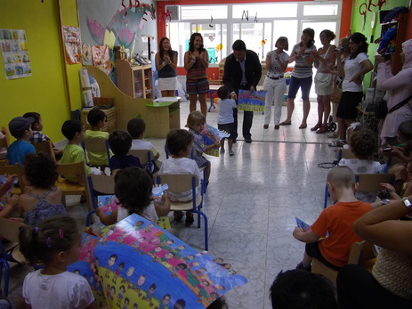 Durante la jornada los más pequeños han contado con la compañia de sus papás y mamás y con la visita de la concejala de Servicios Sociales, María Jesús Albiol, y del alcalde de la ciudad, Andrés Martínez, que ha entregado la orla con el conjunto de compañeros de clase a todos y cada uno de los treinta pequeños que han seguido este curso previo al ingreso en la educación pre-escolar.