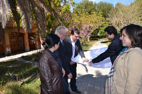 La primera visita del día la ha llevado a cabo el concejal de Urbanismo, Romualdo Forner, con parte de su equipo, con el objetivo de inventariar los árboles y palmeras existentes y elaborar un cuaderno de necesidades de jardinería. Hay alrededor de setenta árboles y palmeras dentro de los terrenos del Centro, de entre los cuales destacan los olmos, pinos mediterráneos y eucaliptos.