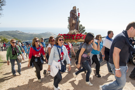 La misa en la parroquia da comienzo a la procesión del Santo que va custodiado y portado por mujeres hasta su ermitorio en el Parque Natural de la Sierra de Irta.