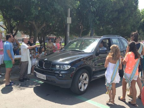 Con motivo de la festividad de San Cristóbal, Patrón de los conductores, el pasado domingo los peñiscolanos pasaron por la Avenida Maestro Bayarri para recibir la bendición por parte del párroco de la ciudad, Manel Domènech.