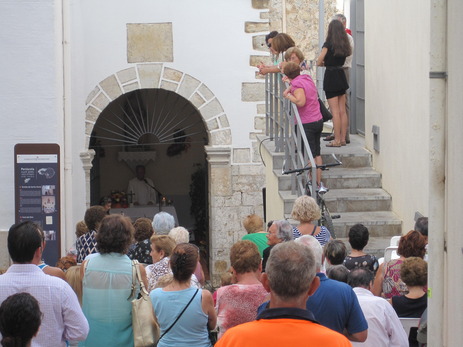 Los vecinos de Peñíscola han celebrado esta mañana la misa en honor a Santa Ana en la capilla que recibe su nombre en el entorno del Casco Antiguo de la ciudad. Es una fecha señalada en el calendario veraniego de los peñiscolanos y  ,además, congrega a decenas de fieles entorno a la capilla de la santa junto a la Casa del Agua. Entre ellos, el alcalde de Peñíscola, Andrés Martínez, quien todos los años acude a la celebración.