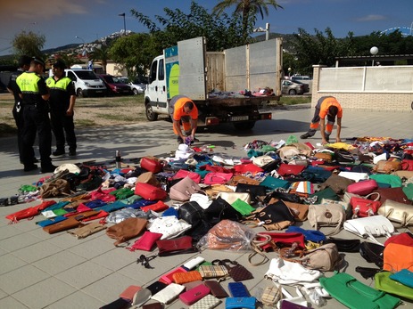Tras la destrucción de varias remesas de artículos incautados a lo largo del verano, la Policía Local de Peñíscola ha procedido a la destrucción de los últimos 2000 artículos incautados.