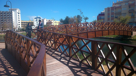Esta semana han finalizado las obras de restauración del puente de madera ubicado sobre el Ullal de l’Estany, en pleno centro de la ciudad. Concretamente, la obra ha reforzado la estructura interna del puente para incrementar su rigidez y ha renovado toda la superficie de madera que conforma la pasarela del puente; además, se han sustituido los actuales accesos de obra por una nueva estructura recubierta de madera que incorpora dos rampas, una por cada acceso, para garantizar su accesibilidad.