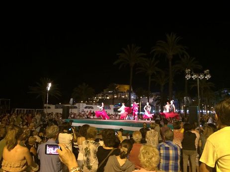 La escuela de baile de la agrupación cultural andaluza de Peñíscola ofreció ayer a miles de turistas atraídos por el arte flamenco un espectáculo de baile en pleno paseo maríimo. Peñíscola se llenó de colores y sonidos del sur en una noche en la que el duende fue el protagonista. La concejala de Cultura, Amparo Bayarri, ha valorado como “excepcional” la iniciativa, su organización y desarrollo y ha felicitado a la entidad peñiscolana su dedicación y entrega en este evento que sorprendió a los turistas de la Ciudad en el Mar.