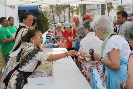 La Reina y Damas de los festejos, junto a la Comisión de las Fiestas y parte de la Corporación Municipal, han repartido frente a la Oficina de Información Turística de la ciudad estos típicos dulces en una jornada ya tradicional dentro del calendario del mes de septiembre en la que se rinde homenaje a todos los turistas que eligen la Ciudad en el Mar como destino de sus vacaciones, especialmente en septiembre, para compartir con los vecinos y vecinas del municipio sus fiestas grandes.
