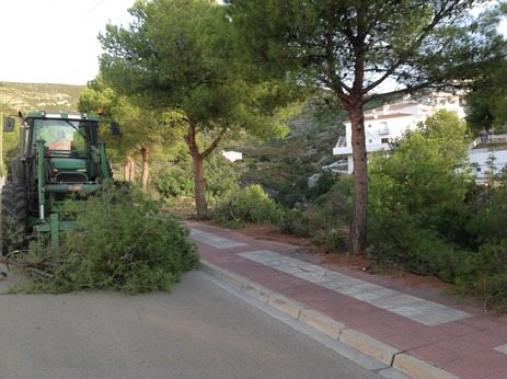Tras las mejoras en el asfaltado y la acera en la Avda Mediterráneo de la urbanización Fontnova, la concejalía de Servicios del Ayuntamiento de Peñíscola, ha puesto en marcha los trabajos de poda de los pinos ubicados en esta misma vía. Estas tareas se prolongarán apenas unos días y se está estudiando concluirlos con la colocación de unas barandas de protección en las zonas en las que el barranco que discurre contiguo a la avenida está más pronunciado. Este entorno se desbroza de forma rutinaria anualmente y, además, “en los últimos años, hemos venido implementando mejoras e invirtiendo en facilitar la movilidad de los vecinos de este entorno” explicaba la concejala del área, Lupe Roig, que ha recordado no sólo las mejoras en el firme y las aceras, sino también la construcción de rampas para personas con movilidad reducida, la construcción de un murete en la zona más próxima al barranco, la pintura de viales y pasos de peatones o la mejora del entorno ajardinado de acceso a la urbanización.