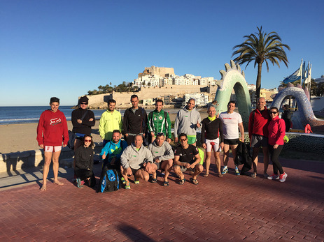Este fin de semana ha tenido lugar la tercera edición del Triatlón Training Camp Peñíscola, una actividad de reconocimiento previo de los circuitos del Triatlón de Media Distancia de Peñíscola, a celebrar el próximo 26 de abril. Un grupo reducido de triatletas ha podido conocer de la mano del director de carrera y coordinador del campus, Manu García, las peculiaridades de los diferentes segmentos, horarios, reglamento de la prueba, etc. permitiéndoles llegar más y mejor preparados al concentrar en apenas 24 horas: 2000 metros de natación en un mar bastante embravecido, ejercicios de fuerza y estabilización, y 70 kilómetros de ciclismo con transición continua a 10 kilómetros de carrera pie.