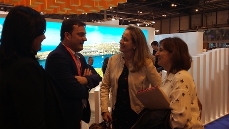 El alcalde de la ciudad, Andrés Martínez, ha mantenido un encuentro en Fitur con la Presidenta de la Federación española de Familias Numerosas y las responsables de la gestión del Sello de Turismo Familiar, avalado por la Secretaría de Estado de Turismo.
