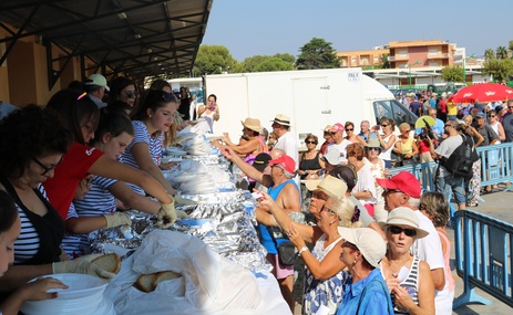 Peñíscola, han repartido en el día de hoy más de 350kg de sardinas en 3500 raciones al precio simbólico de un euro en beneficio de la agrupacion local de la Asociación Española contra el Cáncer. La Reina y Damas, así como los miembros de la Corporación han servido las raciones mientras los propios marineros del cabildo han asado las sardinas que han hecho las delicias de las casi 4000 personas que han acudido al puerto a lo largo de la mañana.