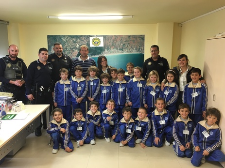 El concejal de Gobernación, Alfonso López, les dio la bienvenida y les repatió un llavero conmemorativo de la visita, así como un carnet de " Amigos de la Policía Local" a cada niño.