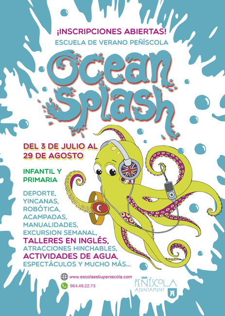 Este año el eje temático esta relacionado con el mundo marino, bajo el nombre OCEAN SPLASH se han programado actividades que potenciaran los conocimientos de las diferentes especies marinas de la zona, las artes de pesca y los deportes de agua. Además de las actividades que se realizaran en el recinto del CEIP Jaime Sanz, se han programado diferentes excursiones relacionadas con la ambientación de esta nueva edición como la visita al Museo del Mar de la ciudad, una excursión a Aquarama ( Benicassim), la jornada de Padel Sur en Peñíscola, Gincana de Agua en las instalaciones  Paintball Peñíscola, entre otras.
