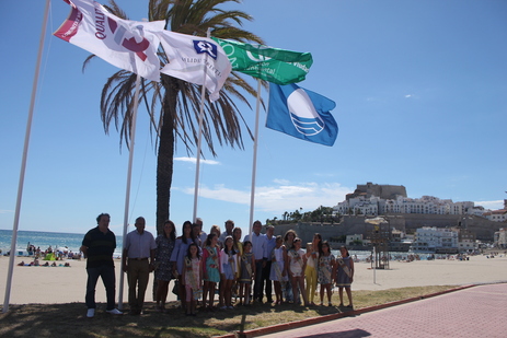 Con la apertura de la temporada de baño, Peñíscola luce ya en sus playas las banderas que acreditan la gestión medioambiental y la calidad de su litoral, tanto en las dos playas urbanas, como en las 15 calas naturales ubicadas en el Parque Natural.